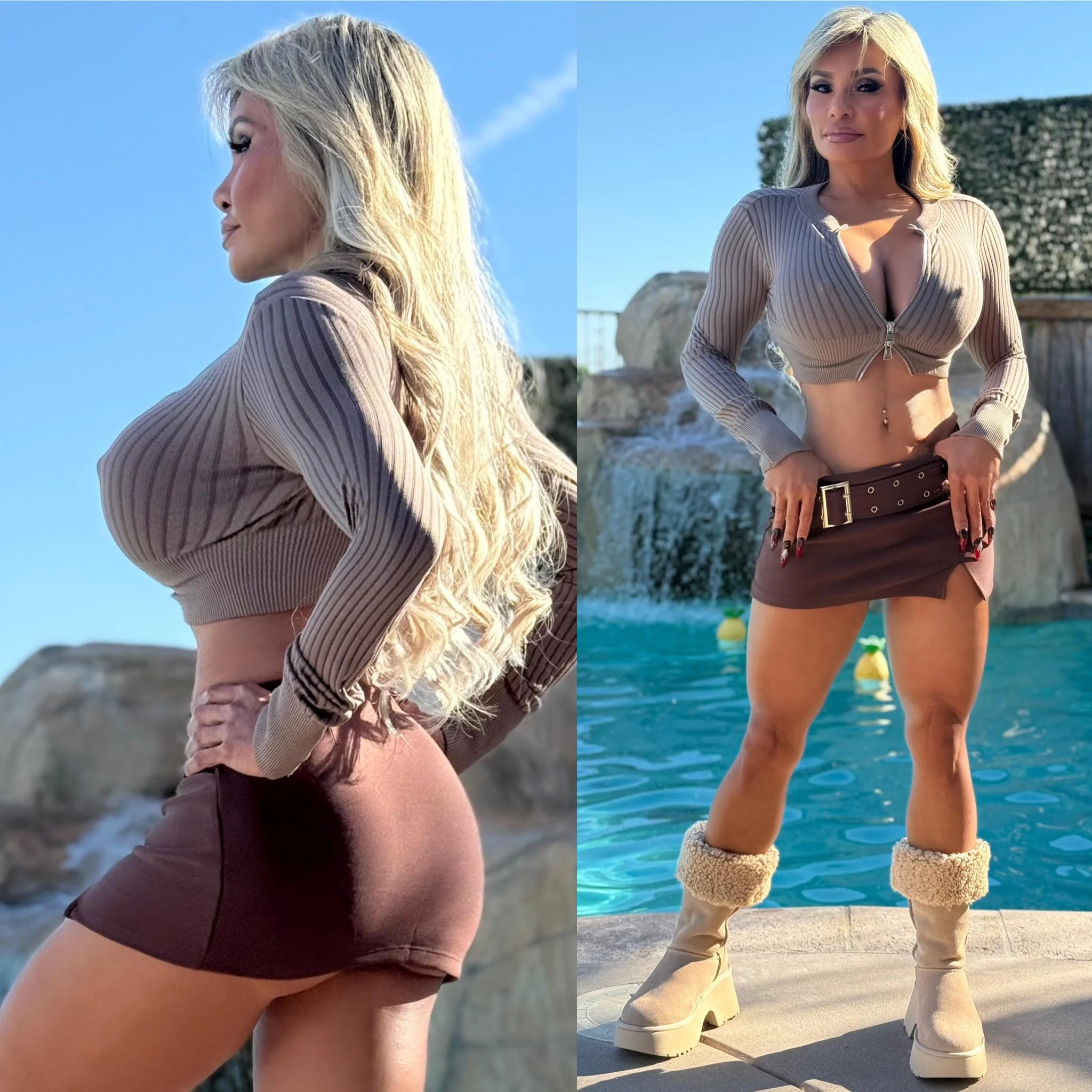 Connie's "SLING BELT MICRO MINI SKIRT" CHOCOLATE FULL Stretch Fit, With Built in Full stretch Shorts